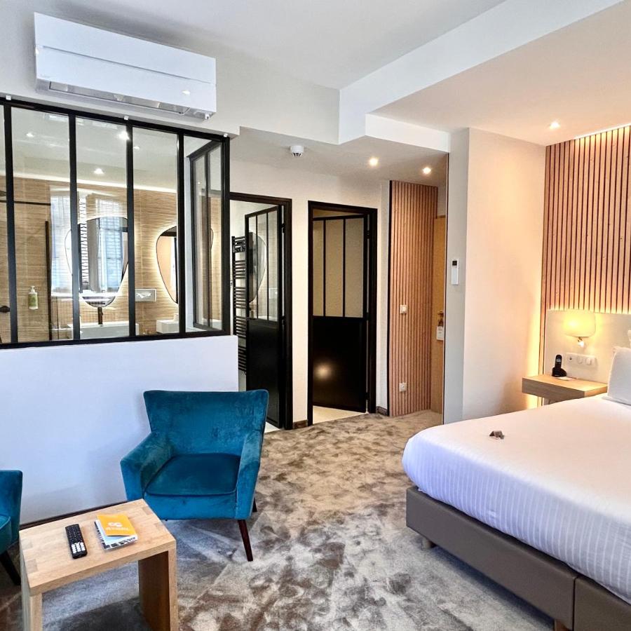 Der Komfort ist darauf ausgerichtet, völlige Entspannung zu ermöglichen. Hochwertige Betten erwarten Sie, und Sie können sogar das Kissen wählen, das perfekt zu Ihrem Schlaf passt. Die meisten Zimmer bieten diesen kleinen Luxus, den man sich viel zu selten gönnt: eine private Whirlpool-Badewanne. Stellen Sie sich vor, Sie entspannen sich nach einem Tag voller Entdeckungen in den sprudelnden Blasen – ein reines Wohlfühlerlebnis. Um die Entspannung noch zu steigern, können Behandlungen und Massagen direkt in der Privatsphäre Ihres Zimmers organisiert werden. Und um verbunden zu bleiben, sei es aus Freude oder für die Arbeit, garantiert Ihnen der leistungsstarke WLAN-Zugang eine flüssige und schnelle Verbindung.