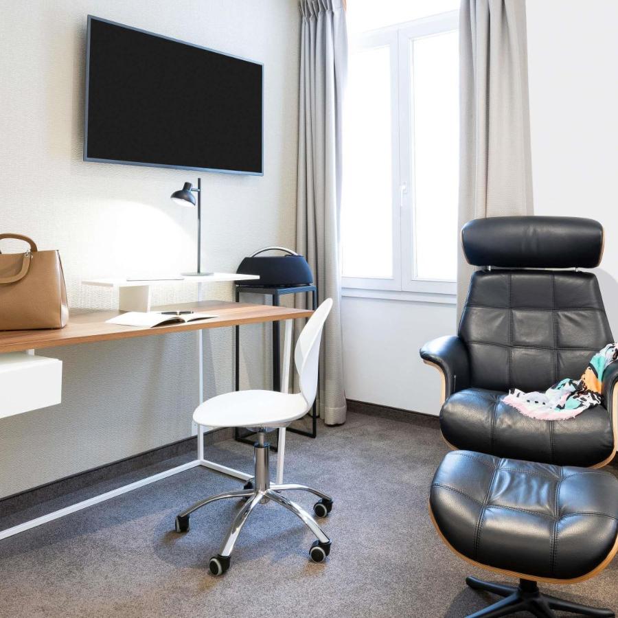 Jedes Zimmer verfügt über ein modernes Badezimmer, einen Flachbildfernseher mit Zugang zu internationalen Kanälen und Canal+ sowie einen Safe, der groß genug ist, um einen Laptop aufzunehmen. Die individuell regulierbare Klimaanlage ermöglicht es, die Temperatur sowohl im Sommer als auch im Winter nach Ihren Wünschen anzupassen. Einige Zimmer bieten sogar Überraschungen: ein „Frauen-Zimmer“, ein „Männer-Zimmer“ oder ein „2030-Zimmer“, die in einem kreativen Geist gestaltet sind und Ihrem Aufenthalt eine unerwartete Note verleihen.