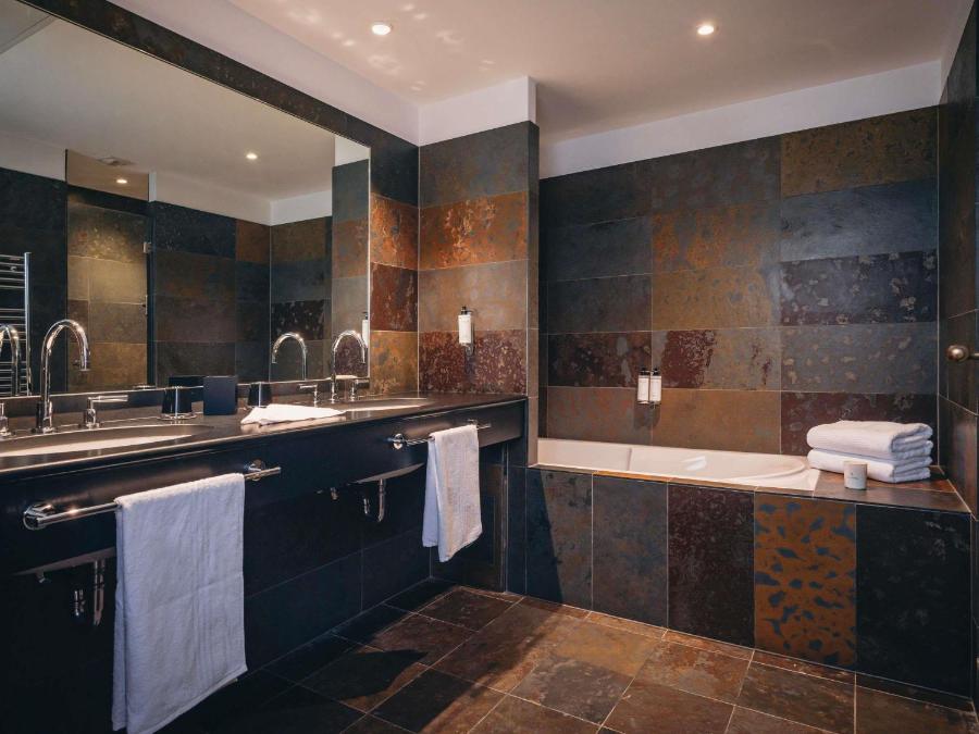In the morning, breakfast becomes a true ritual. It is served in the room of the old stables, a cozy and elegant space, or on the sunny terrace as soon as good weather arrives. It is an opportunity to taste local flavors, with a hearty and energizing buffet that highlights regional products. Indulge in a traditional kouglof, a fresh pretzel, artisanal jams, or cheeses from nearby farms. The hotel also caters to your specific needs with gluten- and lactose-free options so that everyone can start the day in the best way possible. Perhaps a small gourmet break in the afternoon is in order, a delicious moment to enjoy in the tearoom before setting off again to explore the city. At nightfall, the hotel bar becomes the perfect retreat. Its intimate ambiance, blending wood and leather, is conducive to conversations. It is the ideal place to relax after a day of exploration, an inventive cocktail in hand, prepared by inspired bartenders.