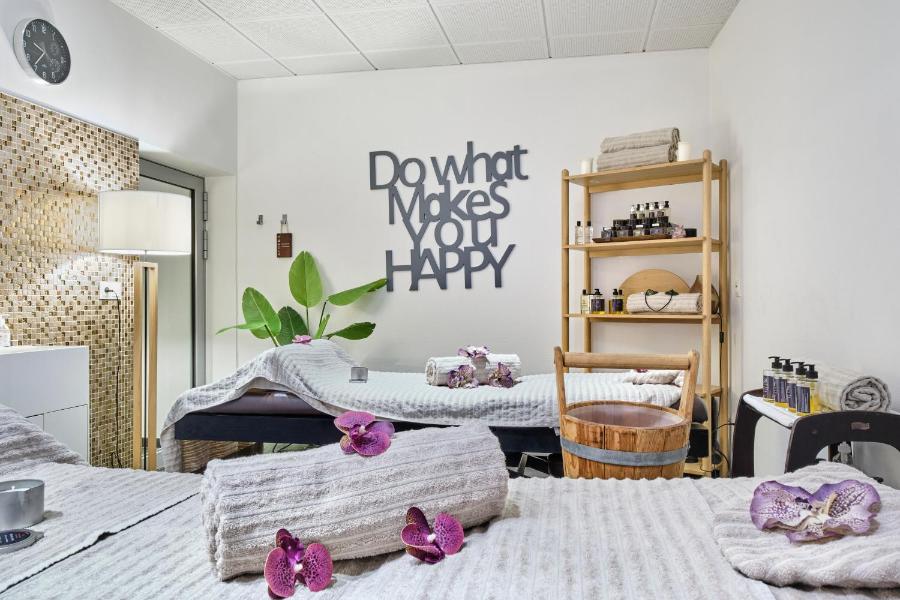 Pero el verdadero atractivo de esta dirección es la invitación a desconectar. Bajas al spa, y se abre ante ti un espacio de 300 m² dedicado a tu bienestar. La piscina sensorial es una experiencia en sí misma. El agua, calentada a una temperatura cercana a los 30°C, te envuelve. Déjate guiar por las diferentes estaciones: el banco masajeador para liberar tensiones en la espalda, los chorros potentes para las piernas, o la suave cascada para el cuello. La cromoterapia acuática añade una dimensión visual relajante a este baño revitalizante. La exploración continúa en el espacio Wellness. Dependiendo de tu estado de ánimo, puedes elegir el calor seco de la sauna finlandesa o el ambiente húmedo y más suave de la sauna tropical. El hammam estrellado es una promesa de purificación, ideal antes de probar la ducha de experiencias. Es un ritual completo para borrar la fatiga y las tensiones de un día de visitas o reuniones. Para perfeccionar este momento, puedes regalarte un masaje, un tratamiento facial o un exfoliante corporal, realizados con cita previa por terapeutas expertos. Y después del esfuerzo, el merecido descanso: el bar del spa te espera con sus coloridos sillones, para un batido o una bebida caliente, prolongando la burbuja de serenidad. Si para ti la relajación también pasa por la actividad física, la sala de fitness está disponible a cualquier hora. El equipamiento de entrenamiento cardiovascular es moderno y te permite mantener tu rutina, ya sea al amanecer o tarde por la noche, 24/7.
