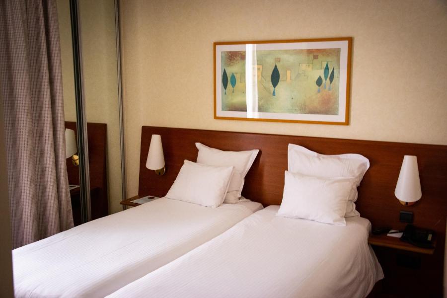 La atmósfera del lugar prioriza la serenidad. Detrás de su fachada contemporánea, el hotel se organiza alrededor de espacios amplios y funcionales, en los que se puede vivir a su propio ritmo, sin renunciar a los servicios hoteleros de un establecimiento de 4 estrellas. La elegancia de la decoración se refleja en tonalidades suaves, un mobiliario cuidado y una organización de las habitaciones que invita a instalarse.