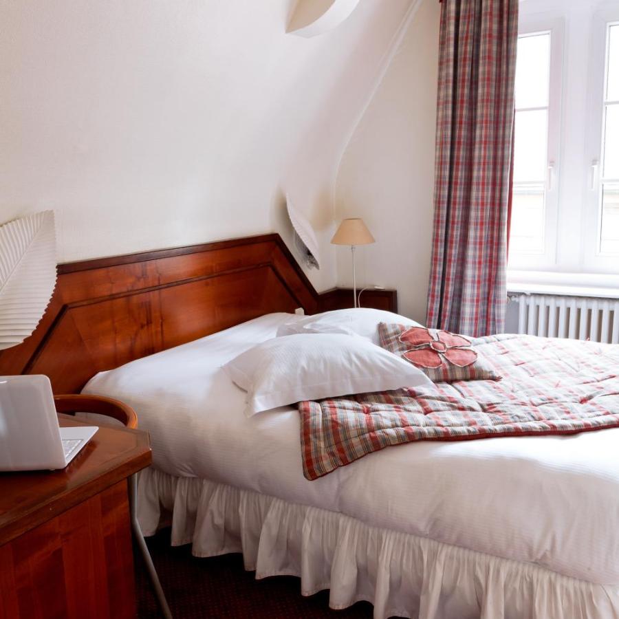 Las habitaciones combinan confort y practicidad. Encontrará un espacio de trabajo, conexión Wi-Fi gratuita y ropa de cama de alta calidad para noches tranquilas. Aunque el edificio es antiguo, cada habitación está equipada con un ventilador para los meses de verano, asegurando un clima agradable en todas las estaciones. Algunas habitaciones, como la suite junior o las familiares, ofrecen amplios espacios para familias o grupos de viajeros, con cómodas camas dobles y una sala de estar en la suite, ideal para relajarse mientras disfruta de la vista de los tejados de Estrasburgo.