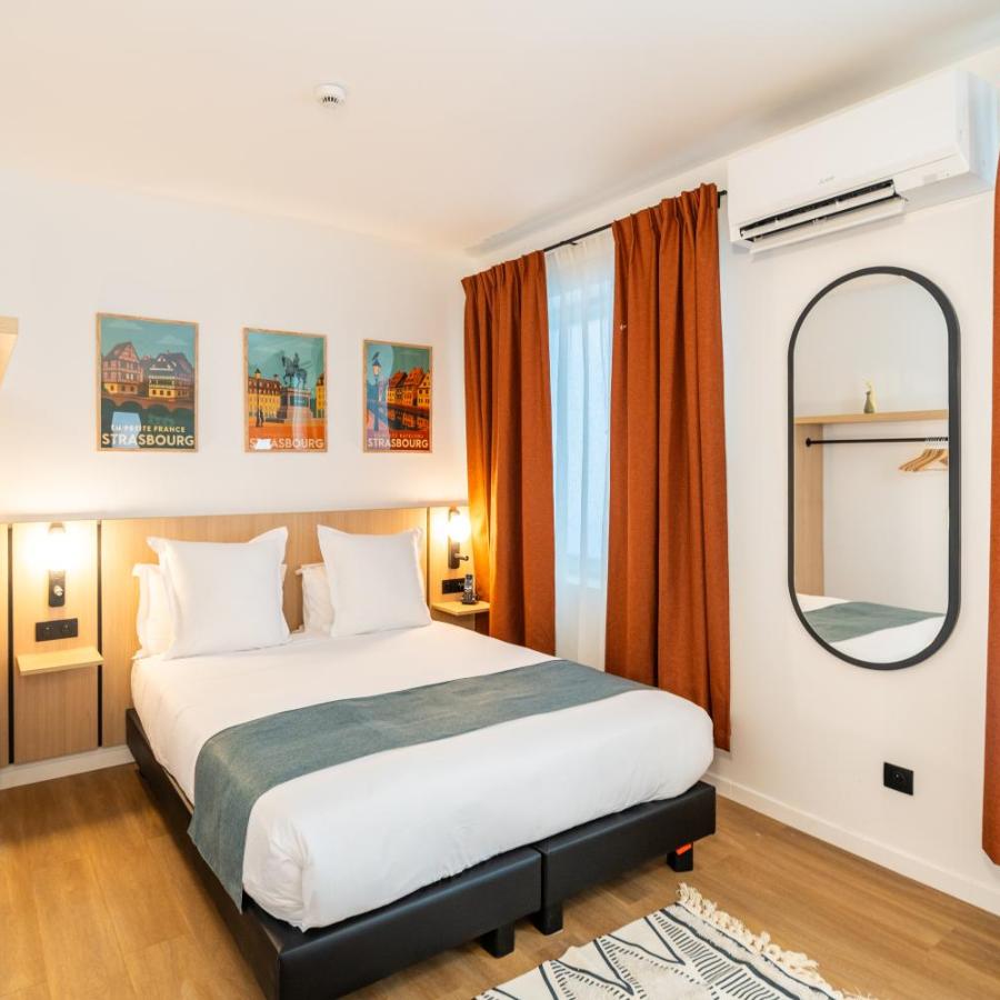 Les 31 chambres de l’hôtel se déclinent en plusieurs catégories afin de convenir aux différentes attentes des voyageurs. Que vous soyez en déplacement professionnel, en vacances en couple ou en famille, chaque type de chambre offre un confort optimal, de la chambre standard simple de 9 m² à la chambre supérieure de 22 m², dotée d’une terrasse privée pour profiter des douces soirées alsaciennes. La plupart des chambres sont équipées de la climatisation pour vous garantir un séjour agréable même durant les mois les plus chauds, et toutes disposent d’une salle de bain privative avec douche ou baignoire, sèche-cheveux, et articles de toilette fournis. Les amateurs de confort apprécieront le soin apporté aux détails : un service d’entretien quotidien, une insonorisation adaptée et un accès Wi-Fi gratuit, vous permettant de rester connecté à tout moment.