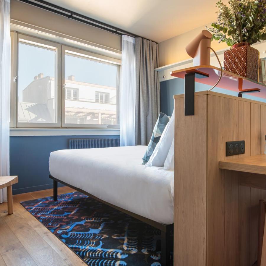 Les chambres, réparties sur plusieurs étages, offrent une variété de formats qui répondent à tous les types de séjour. Certaines sont compactes et fonctionnelles pour une escale rapide, d’autres vastes et lumineuses pour les longs week-ends en tribu. Certaines disposent d’un balcon ou de grandes ouvertures sur la ville. Toutes sont climatisées et équipées d’un plateau de courtoisie, d’un coffre-fort et d’un téléviseur. Le mobilier épuré, les tonalités douces et les touches graphiques composent un univers accueillant, propice au repos.