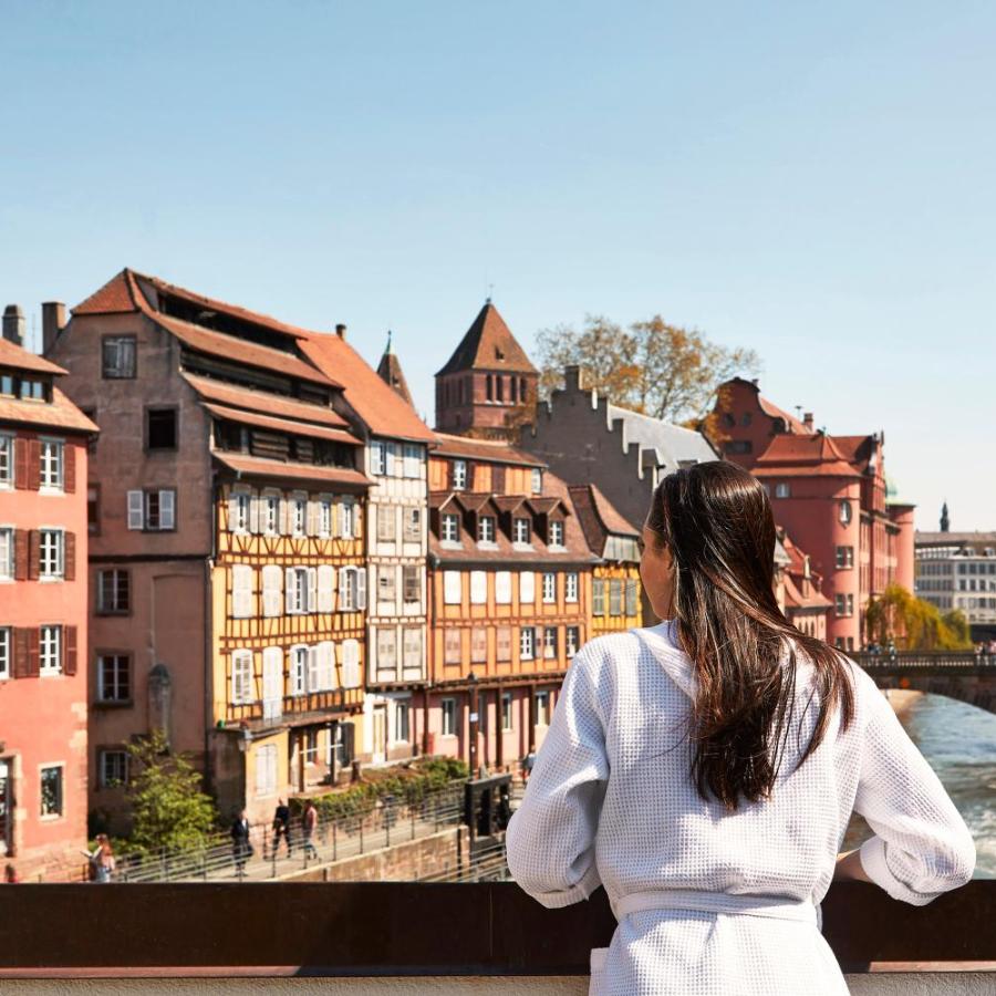 Per una disconnessione totale, l'area benessere porta il nome appropriato: Ô Fil de l'eau. È una vera e propria bolla di serenità dedicata al vostro benessere. Lasciatevi tentare dal rituale del calore, tra sauna e hammam dai dolci profumi. L'esperienza continua con installazioni più sorprendenti, come la grotta di sale, rinomata per i suoi benefici, o la fontana di ghiaccio rigenerante. Il punto culminante è senza dubbio la vasca idromassaggio esterna. Immergersi, in qualsiasi stagione, osservando l'acqua dell'Ill scorrere, è un momento di pura voluttà. L'area offre anche un menu di trattamenti e massaggi, utilizzando prodotti esperti. Potete concedervi questa esperienza in cabina singola o condividerla in cabina doppia.